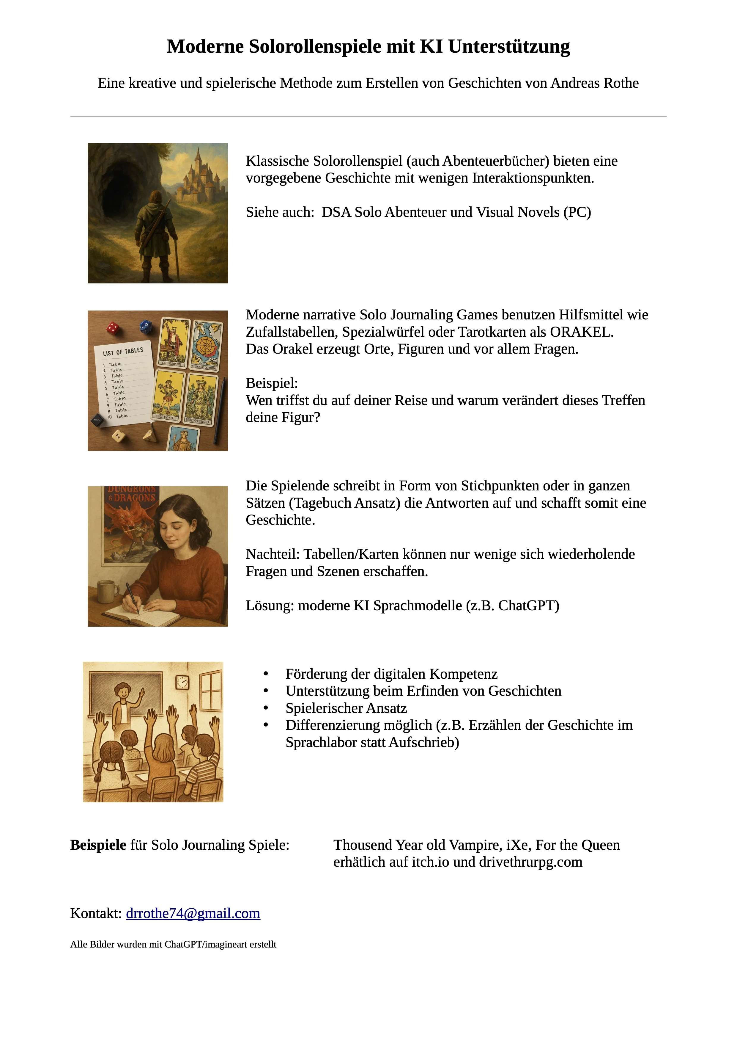 - Nehmt auf einem „Museumsgang“ einen Einblick in die aktuelle Forschung zum Rollenspiel. Eine Posterpräsentation aktueller wissenschaftlicher Ergebnisse erwartet Euch.